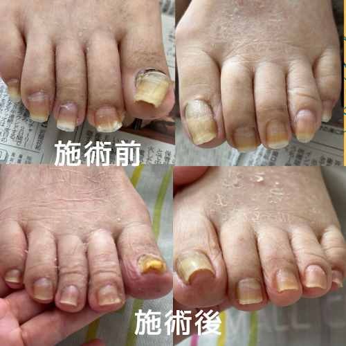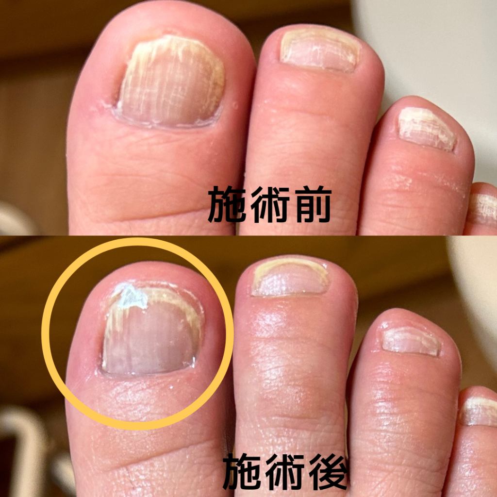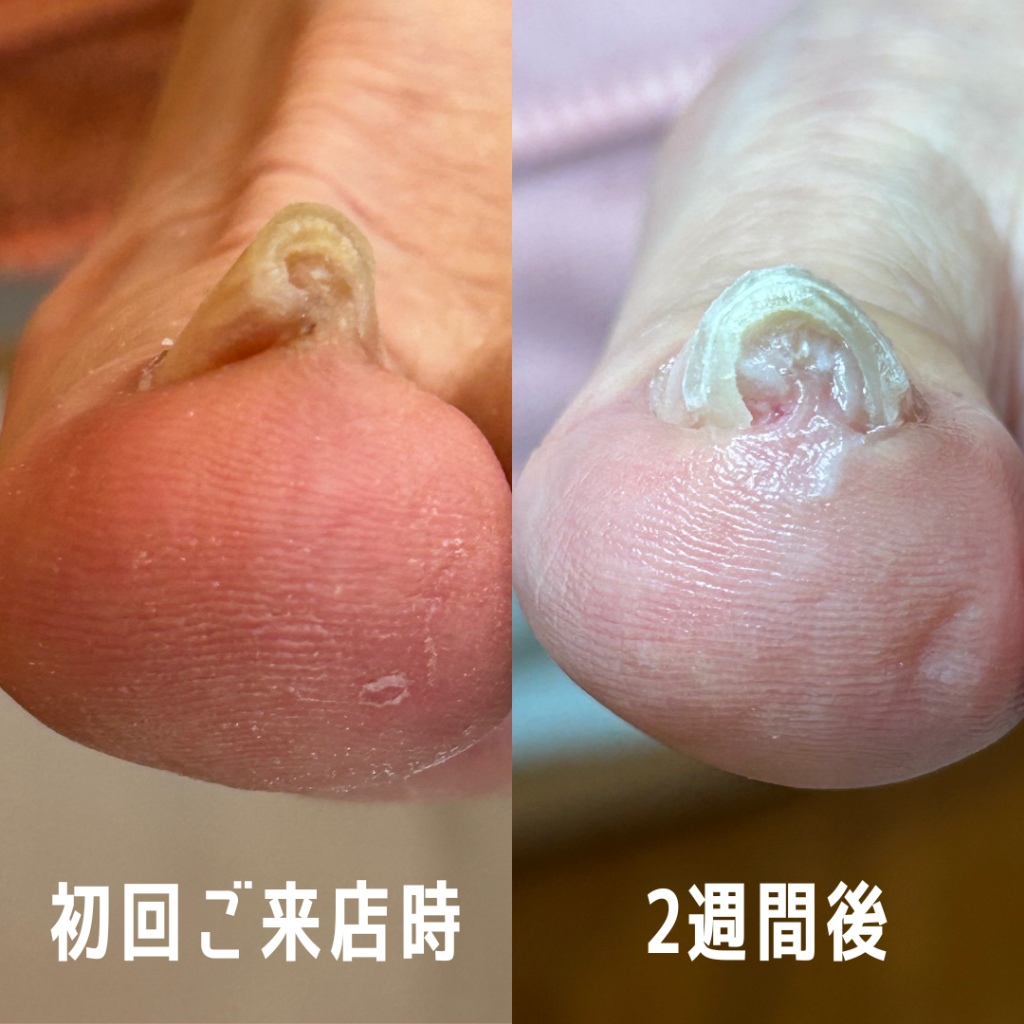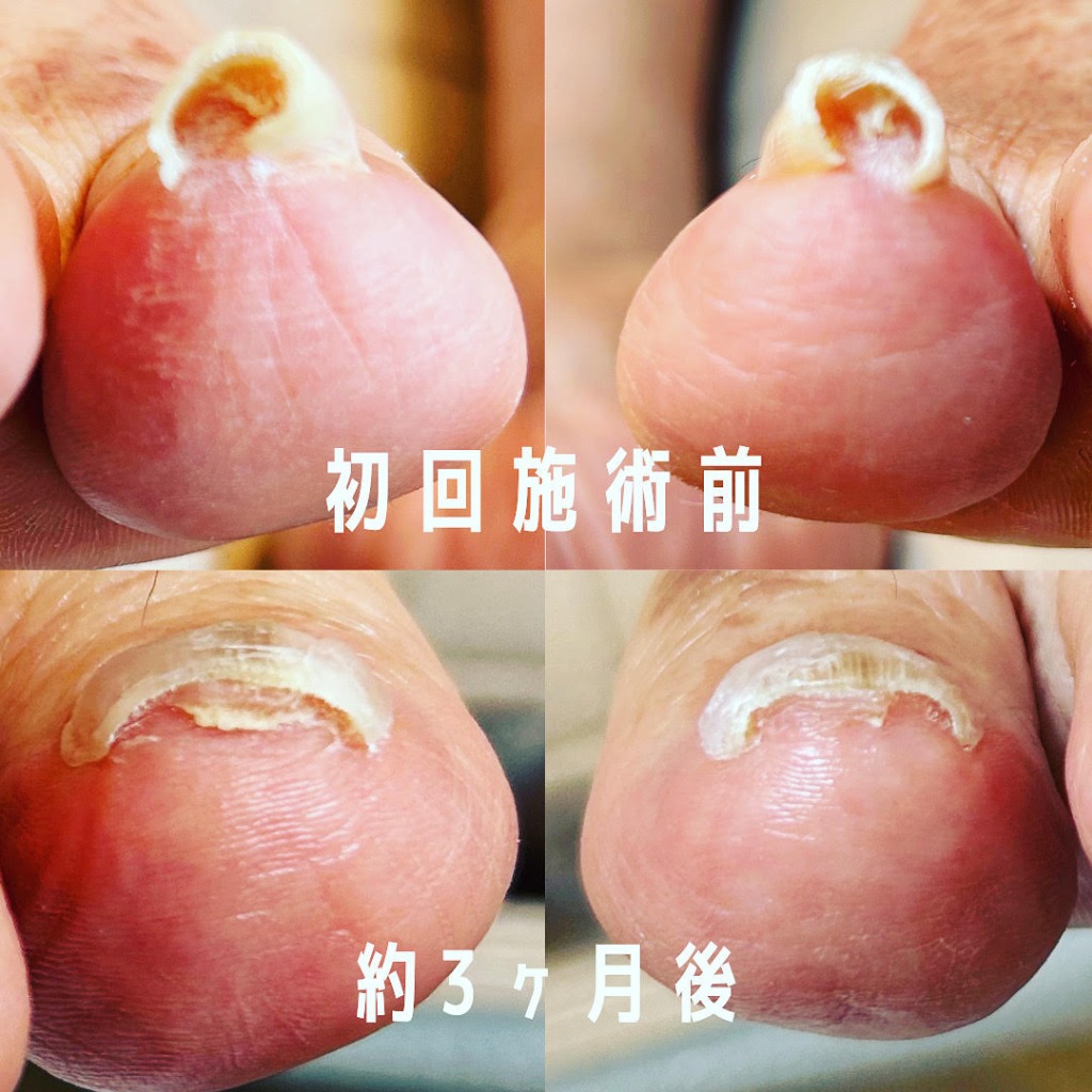 巻き爪で悩まれている方ですが、ケアをして貰える場所がなかなか見つからず、その間に陥入爪となり可能してしまったとの事でした。抗生剤で一時的に改善したものの、今後爪を切らないといけないと言われたそうです。