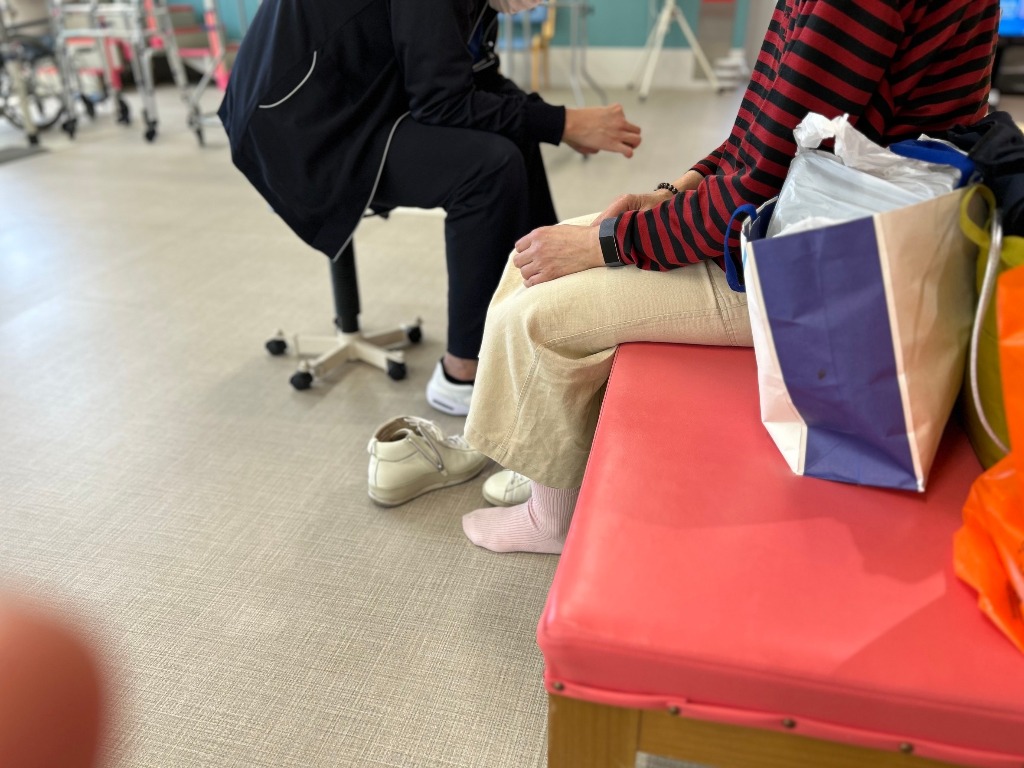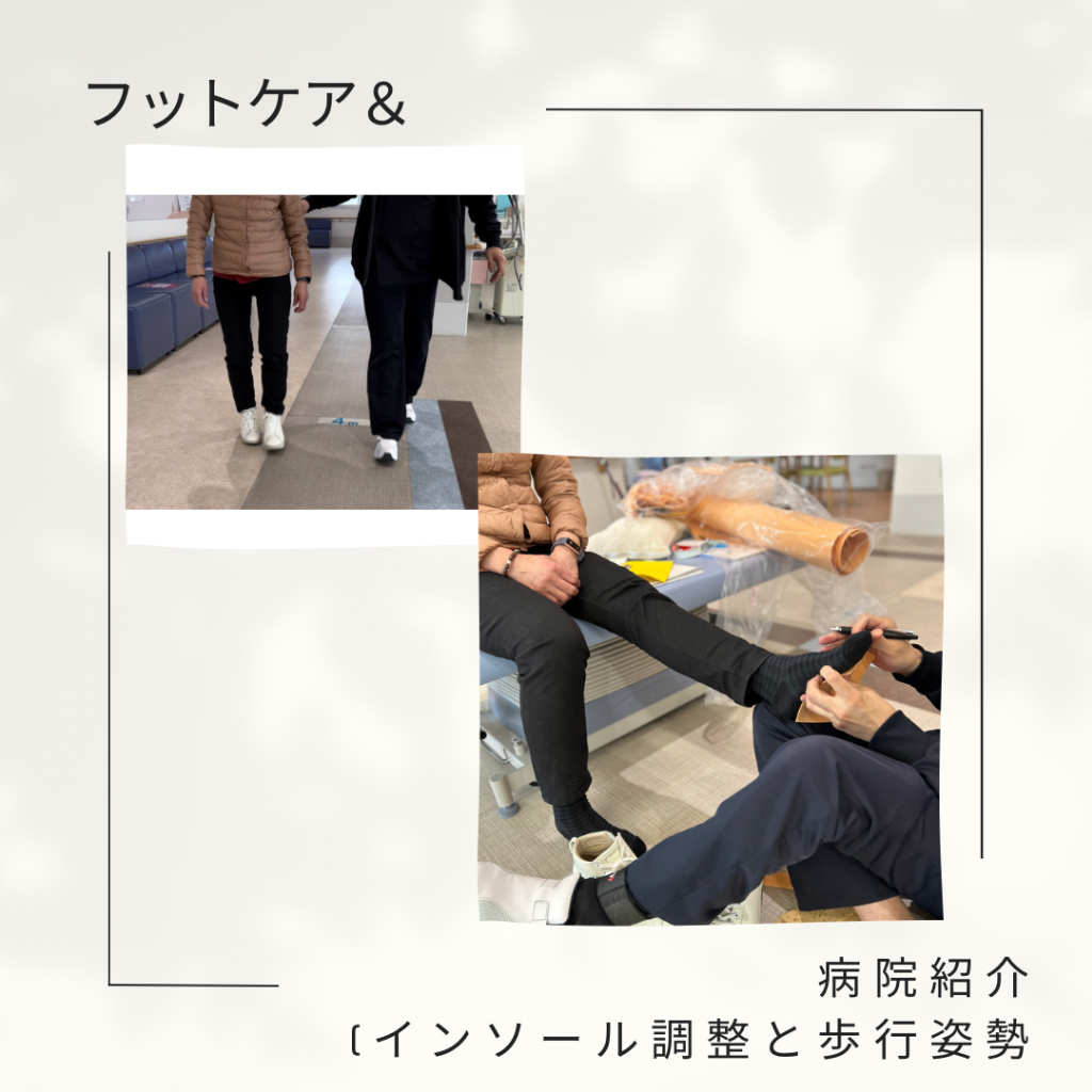 整形医師の問診・診察を経て、リハビリ棟へ移動し、お願いしてあったセラピストにしっかりとインソールの調整や、歩行・姿勢の評価をしていただきました。そして、今後も通院し、関わっていただけることとなりました。