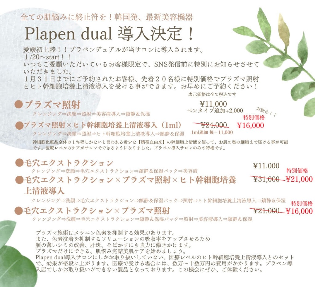 プラズマ照射/幹細胞によるシミケア肌質改善メニュー始まります!