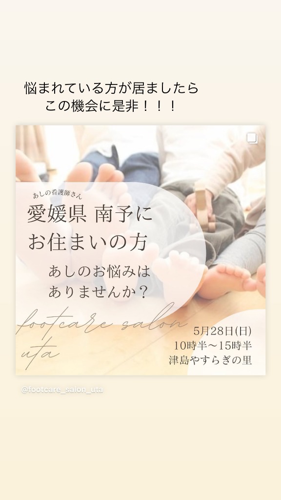 南予地方に住んでおり、あしのトラブルで悩まれている方はぜひこの機会にイベント会場までお越しくださいね。